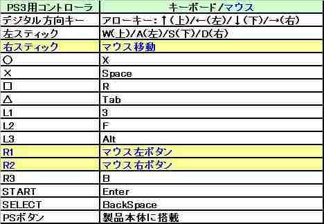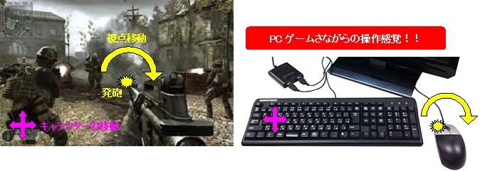 Description老舗ゲームパーツブランド「ゲームテック社」のサポート付で安心! PS3用ゲームをマウスとキーボードで操作! 連射&連射ホールド機能も搭載した変換アダプタ! 特徴1:PS3用ゲームをマウスとキーボードでプレイ!PCゲーム感覚で楽しめる! USB接続のマウス&キーボードに対応! 特徴2:各キーボードのキーに連射設定が可能!さらに連射ホールド機能も搭載! PS3本体に接続するだけの簡単セッティング! PS3本体メニューのXMBの操作もOK! PSボタン搭載! 特徴3:マウスとキーボードのボタン割当ては自由に変更可能!最適な配置でプレイ! ・コントローラの右スティック操作 ⇒マウスの操作へ ・コントローラの十字キー操作 ⇒キーボードの矢印キーへ各種コントローラの操作をマウスとキーボードに割り当てて可能! ・FPS (ガンシューティング) シュミレーションゲームなどに超オススメ! ・マウスとキーボードを使ってPCゲーム感覚でPS3用ゲームをプレイ! <ネット専売用緩衝材 (プチプチエアシート) 袋での簡易包装です> ■ツナイデント3 MAX 特徴説明 ◆特長 ・PS3用コントローラの代わりにUSBキーボードとマウスを使ってゲームをプレイできるコンバータです。 ・FPSゲーム(ガンシューティング)など、「マウス移動で視点移動」、「左クリックで発砲」というように、PCゲーム感覚での操作を可能にします。 ・「連射機能」や「ボタン割当て変更」、「マウス感度調整」など、ゲームの仕様やジャンルにあわせた細かな設定変更ができます。 ![]() ◆ボタン割当て PS3本体への接続時、基本割り当ては次のとおりです。 ※標準的なキーボード/マウスの場合。 ※任意のボタン割当て、マウス感度調整などの設定も可。手順はウェブマニュアルで公開予定。 ![]() ![]() ◆連射機能/連射ホールド設定 <連射機能設定> 設定方法:キーボードの「Home」キーを押しながら、連射したいキーorボタンを押す。 設定後、キーorボタンを押すと連射します。 解除方法:キーボードの「END」キーを押しながら、連射機能を設定しているキーorボタンを押す。 <連射ホールド設定> 設定方法:キーボードの「PageUp」キーを押しながら、連射ホールドしたいキーorボタンを押す。 設定後、キーorボタンを離しても連射機能が動作します。 解除方法:キーボードの「PageDown」キーを押しながら、連射ホールドを解除したいキーorボタンを押す。