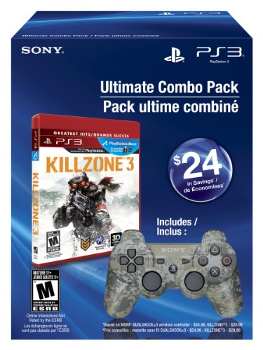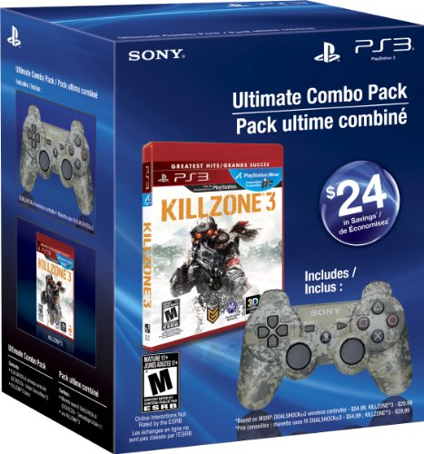 DescriptionGet a new controller and expand your game collection with the Ultimate Combo Pack for the PS3 system. It includes the Urban Camouflage DUALSHOCK 3 wireless controller and Killzone®3 Greatest Hits Blu-ray game. Game Description: ?Visari is gone, but the war is far from over. Helghast forces have mounted a devastating counter-attack, prompting the ISA evacuation of planet Helghan. As new Helghast battalions appear, armed with more powerful weapons, ISA forces find themselves outmanned, outgunned, and surrounded. DUALSHOCK 3 wireless controller Description: ?The Urban Camouflage DUALSHOCK®3 wireless controller is the latest recruit to the exciting lineup of colors. ?Perfect for the first-person shooter fan; get closer to the action by gearing up in urban camo. Just like the rest of the DUALSHOCK®3 family of colors, this newest addition provides intuitive SIXAXIS motion-sensing controls, intense vibration feedback, and a comfortable grip for hours of game play.Features